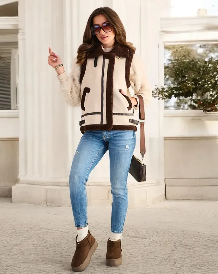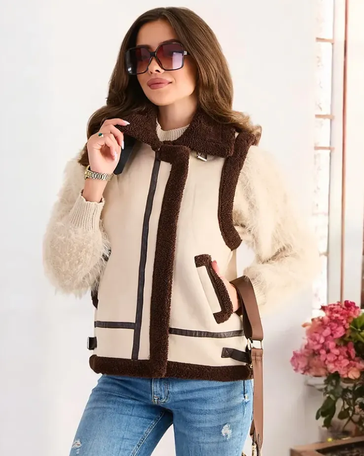 - Rewelacyjna kamizelka damska wykonana z eko skóry. Bezrękawnik zapinany na suwak, posiada 2 wsuwane kieszenie. Produkt opcieplany kożuszkiem. Hit tego sezonu! UWAGA: Dokładność pomiaru (+/-) 1 cm.
