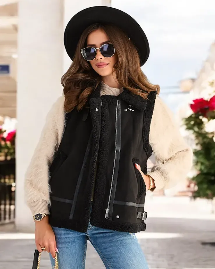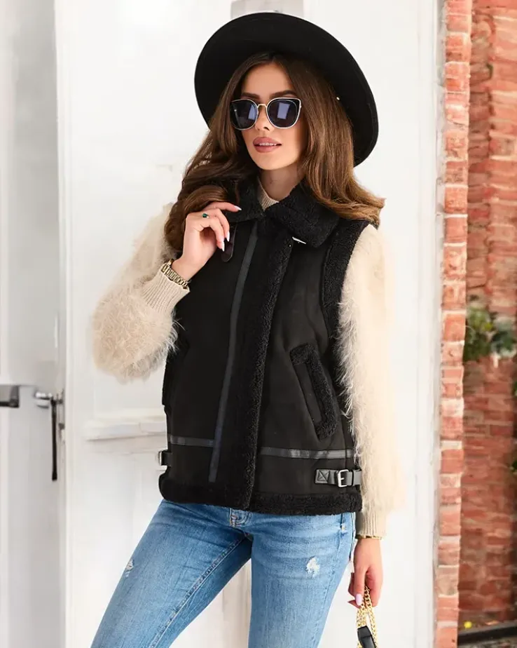 Royalfashion Kamizelka damska z kożuszkiem