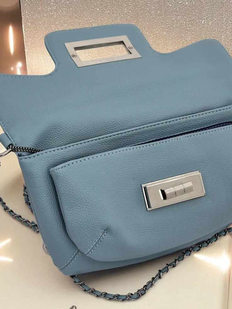 - Elegancka mała torebka damska kopertowa z eko skóry. Model z zapięciem na zamek i magnes, posiada 1 komorę. Dodatkowo regulowany pasek z łańcuszka. Idealna na oficjalne wyjścia!