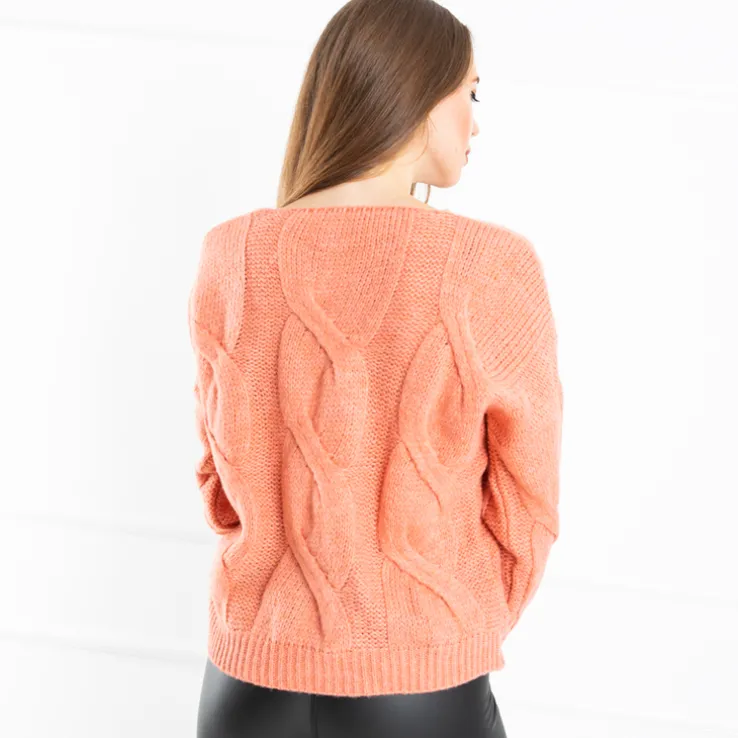 - Przepiękny damski sweter w modnym kolorze, o wysokiej zawartości materiału akrylowego. Ciepły sweter z długimi rękawami i dekoltem V. UWAGA: Dokładność pomiaru (+/-) 1 cm.