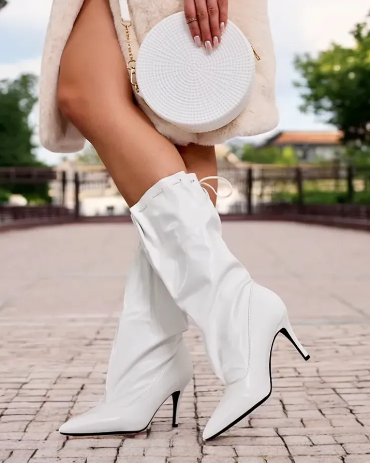 - Krótkie damskie kozaki na szpilce z noskiem w szpic. Wykonane ze skóry ekologicznej, w środku eko skórzana wkładka. Model wsuwany, posiada ściągacz na górze cholewki. Idealny wybór do jesiennych stylizacji!