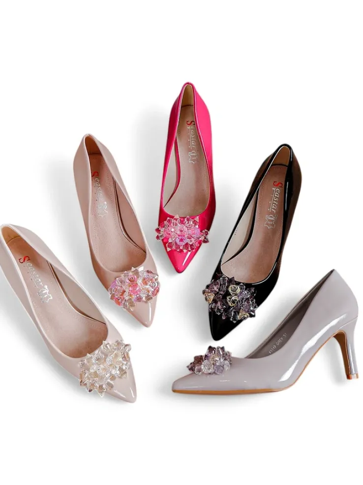 - Eleganckie damskie czółenka na szpilce, wykonane ze skóry ekologicznej lakierowanej. Środek buta jest wyłożony skórą naturalną, a nosek w szpic. Klasa i szyk mody!