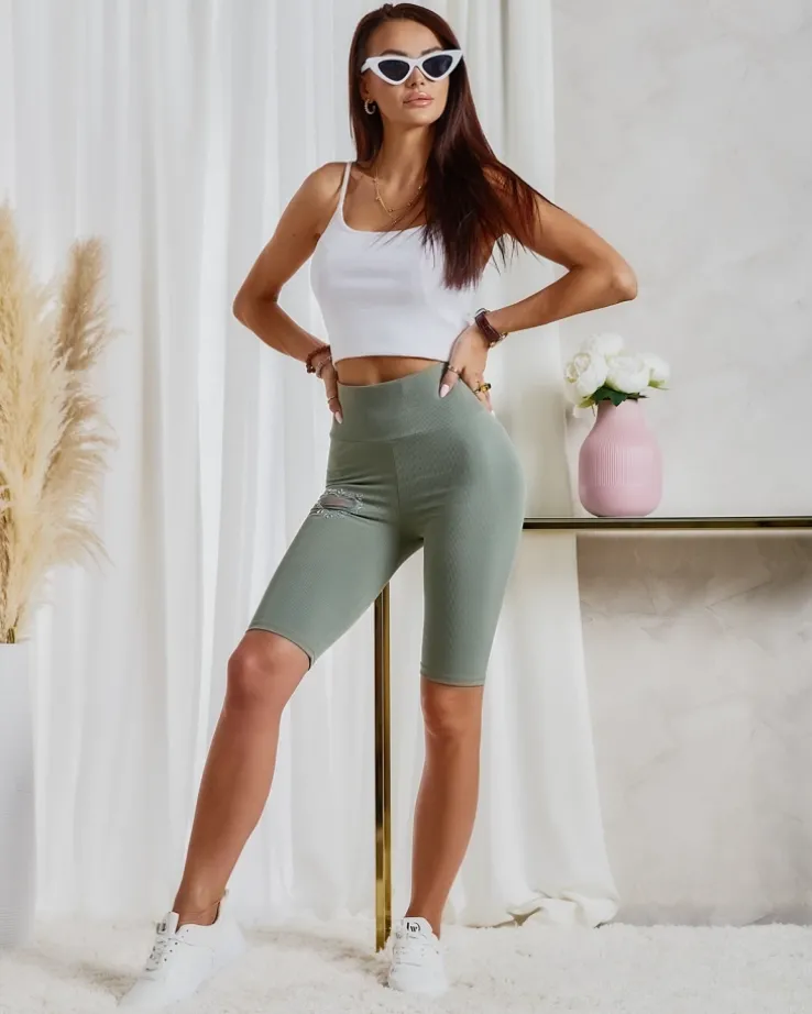 - Damskie legginsy typu kolarki z elastycznego materiału prążkowanego. Na nogawce serduszko z siateczką i cyrkoniami. Wyjątkowe i komfortowe! UWAGA: Dokładność pomiaru (+/-) 1 cm.
