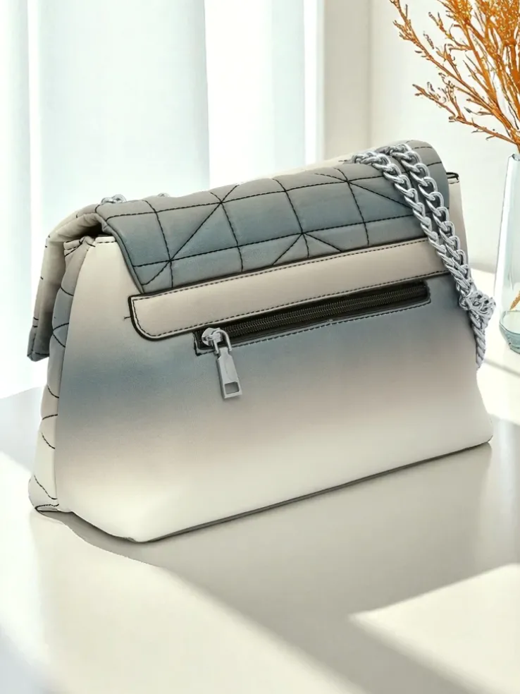 - Elegancka kopertowa torebka z eko skóry z efektem ombre. Zamykana na zamek i zatrzask. Metalowy łańcuszek zamiast paska dodaje szyku. 1 komora idealna na najważniejsze rzeczy na wieczór i specjalne okazje.