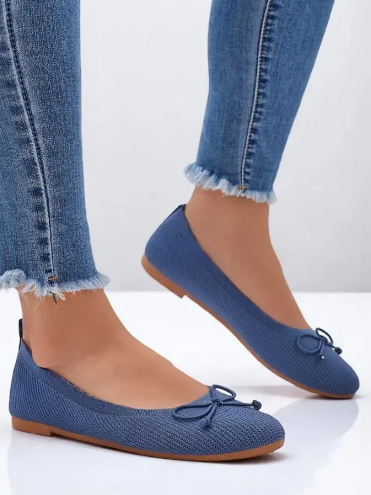 - Wyjątkowe baleriny wykonane z tkaniny z okrągłym noskiem. Cholewka zdobiona subtelną kokardką. Miękka eko-skórzana wkładka dostarczy komfortu. Idealnie się sprawdzą do eleganckich i modnych stylizacji!