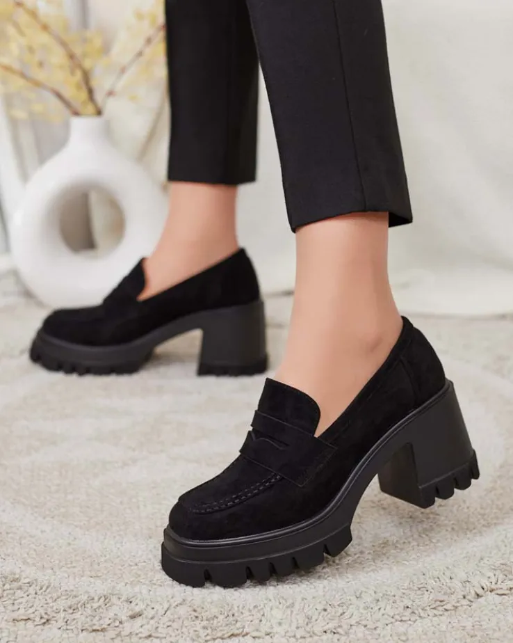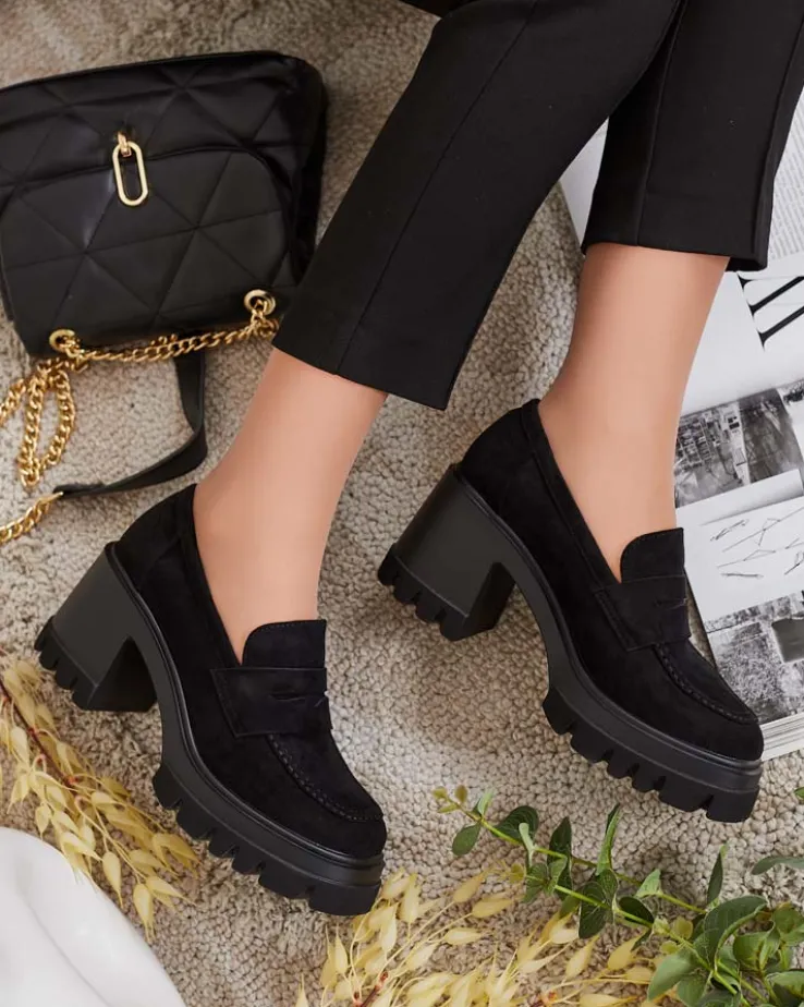 - Przepiękne damskie mokasyny na wysokim słupku. Model w tylu casual i jest wykonany ze skóry ekologicznej zamszowej i wkładki ze skóry naturalnej. Nosek zaokrąglony. Idealna baza dla wielu codziennych looków!
