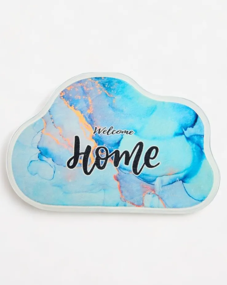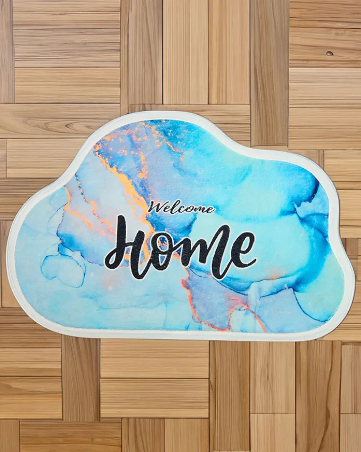 - Mały kolorowy dywanik wycieraczka z krótkim włosiem i napisem ” Welcome Home”. Jest miękki i delikatny, przez co niezwykle przyjemny w dotyku. Dodatkowym atutem dywanu jest jego antypoślizgowy spód.