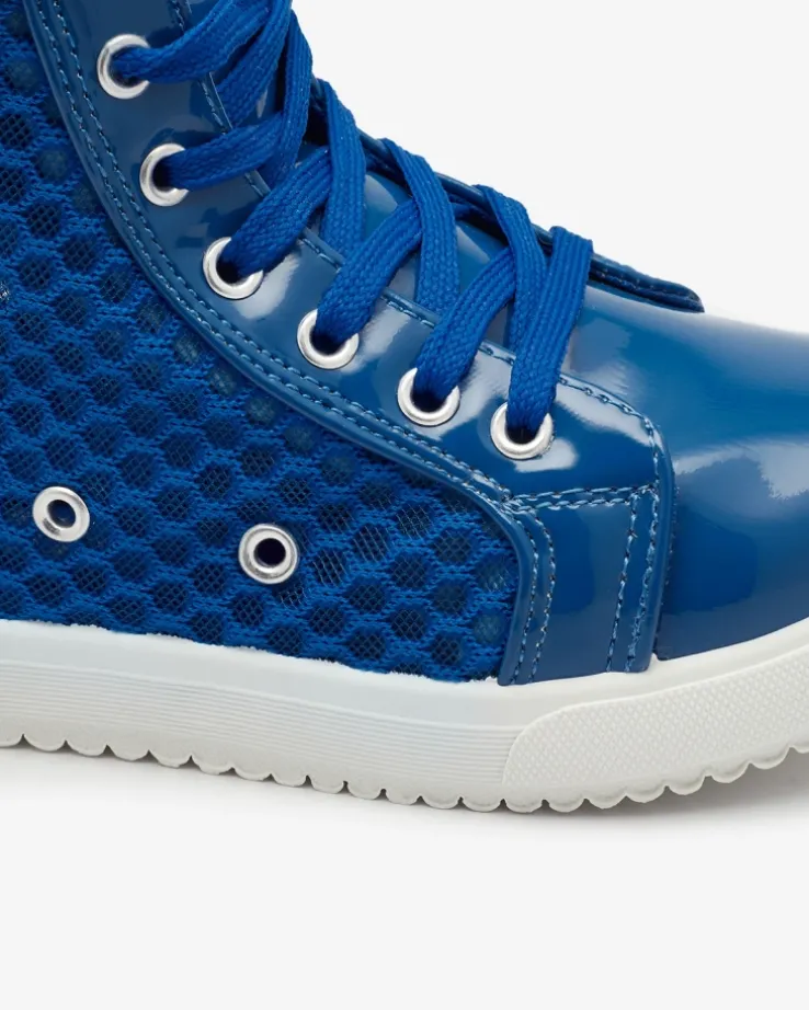 - Dziewczęce tenisówki wykonane z połączenia lakierowanej skóry ekologicznej oraz materiału tkaninowego. Cholewka sznurowana oraz zapinana na zamek. Wkładka tkaninowa, a podeszwa klasycznie gumowa. Te dziecięce tenisówki będą świetne na co dzień!