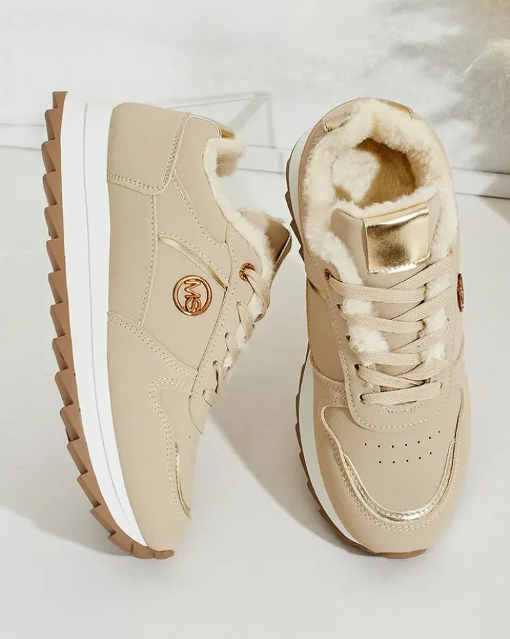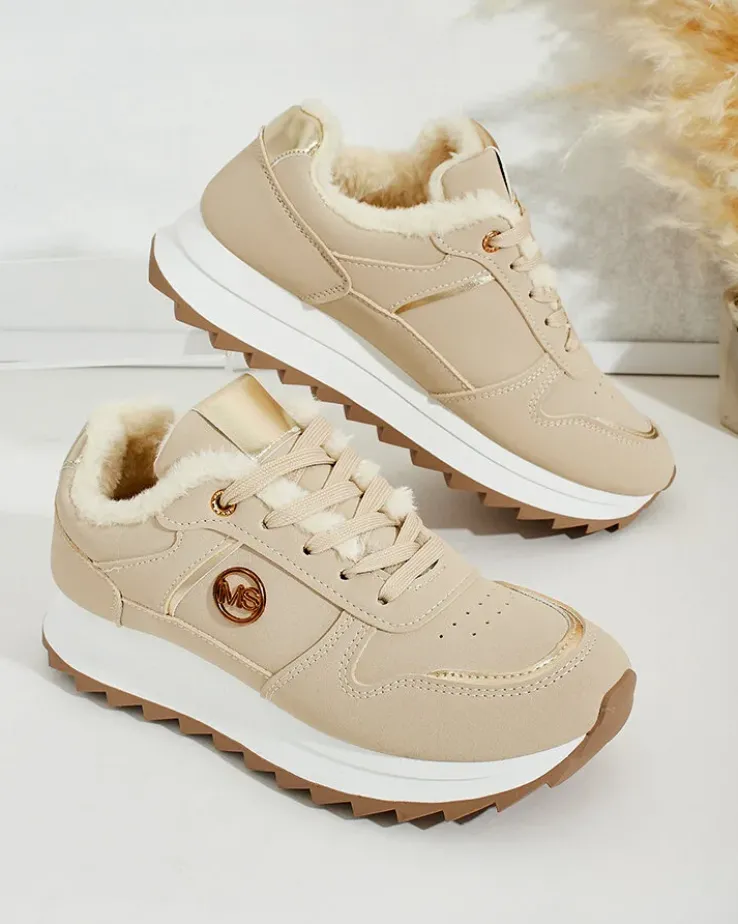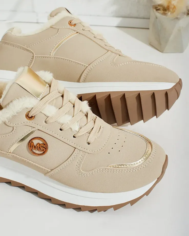 - Sportowe sneakersy damskie na grubszej podeszwie. Cholewka sznurowana, wykonana ze skóry ekologicznej. Wnętrze w całości ocieplone futerkiem. Idealne na chłodniejsze dni!
