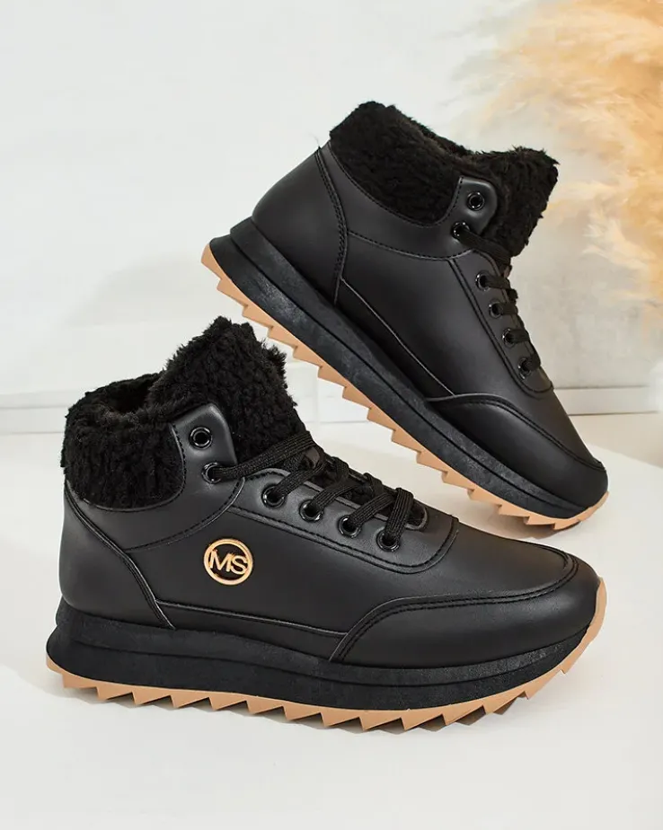 - Sportowe sneakersy damskie na grubszej podeszwie. Cholewka sznurowana, wykonana ze skóry ekologicznej. Wnętrze w całości ocieplone futerkiem. Idealne na chłodniejsze dni!