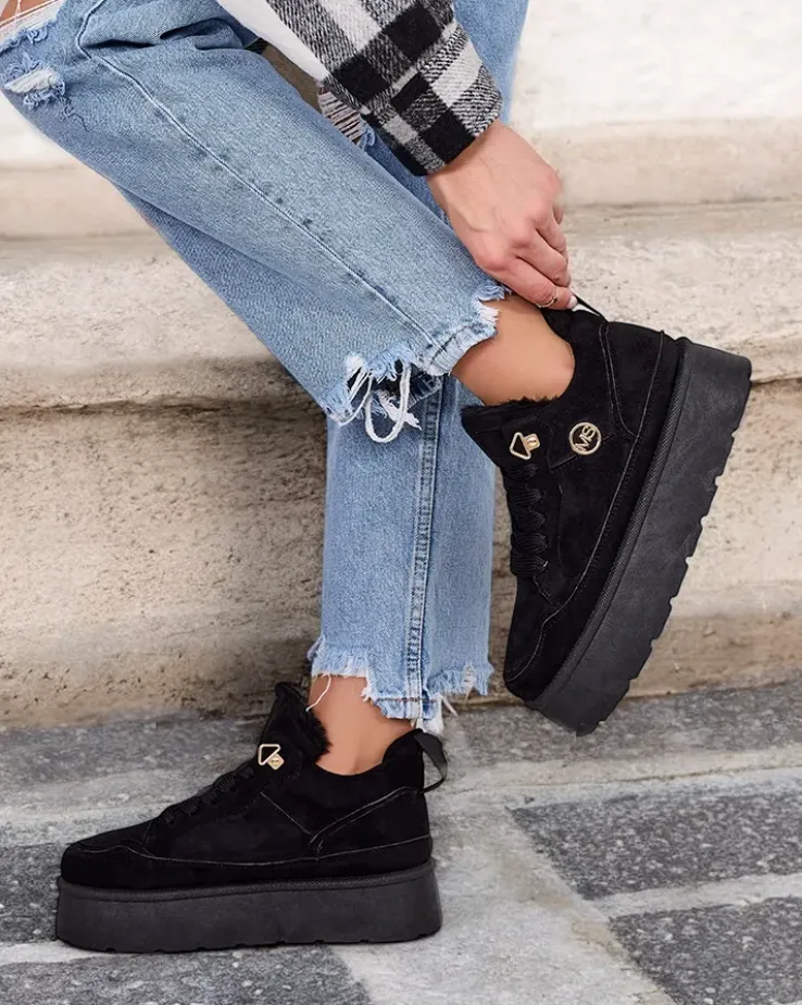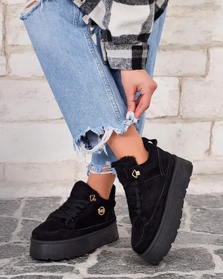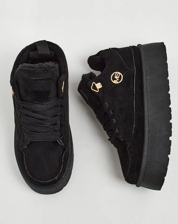 - Sportowe sneakersy damskie na platformie. Cholewka sznurowana, wykonana ze skóry ekologicznej. Wnętrze w całości ocieplone futerkiem. Idealne do sportowych outfitów!