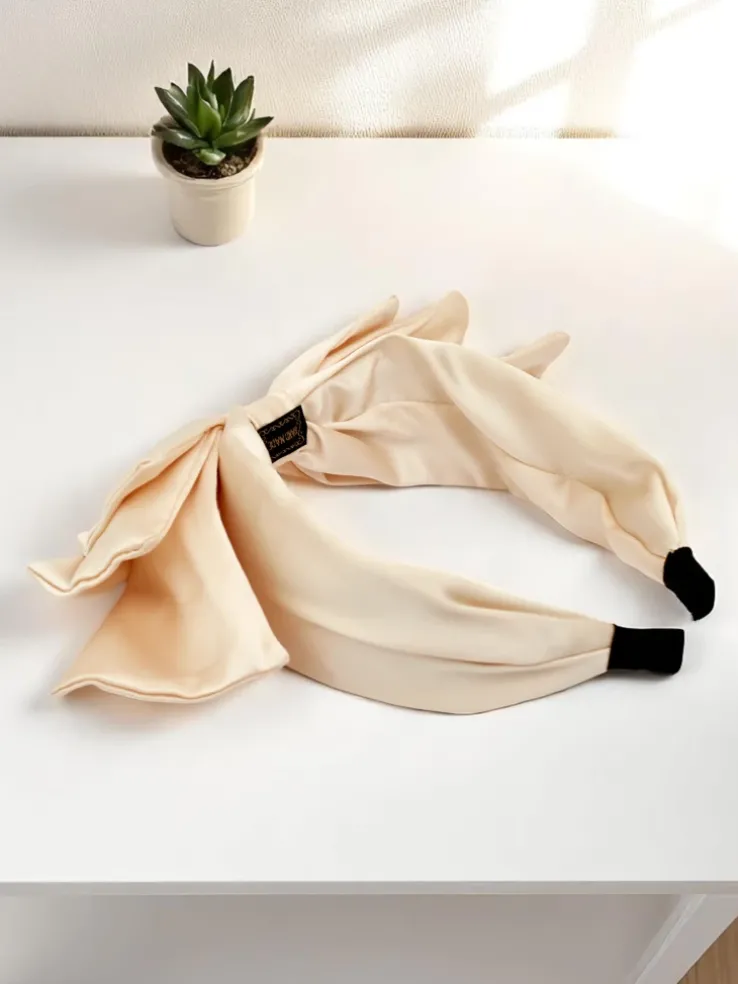 - Satynowa opaska do włosów z kokardką to elegancki i kobiecy dodatek, który doda uroku każdej stylizacji. Miękki, połyskujący materiał pięknie się układa, a ozdobna kokarda przyciąga spojrzenia. Idealna na co dzień i specjalne okazje.
