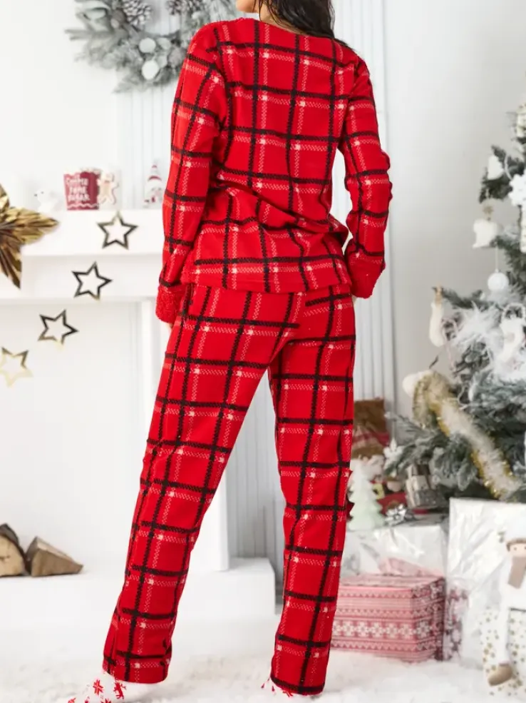 - Piżama damska 2-częściowa z długim rękawem i długimi nogawkami, wykonana z materiału a’la polar. Model zdobiony printem. Idealna na domowe wieczory! UWAGA: Dokładność pomiaru (+/-) 1 cm.