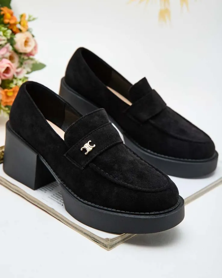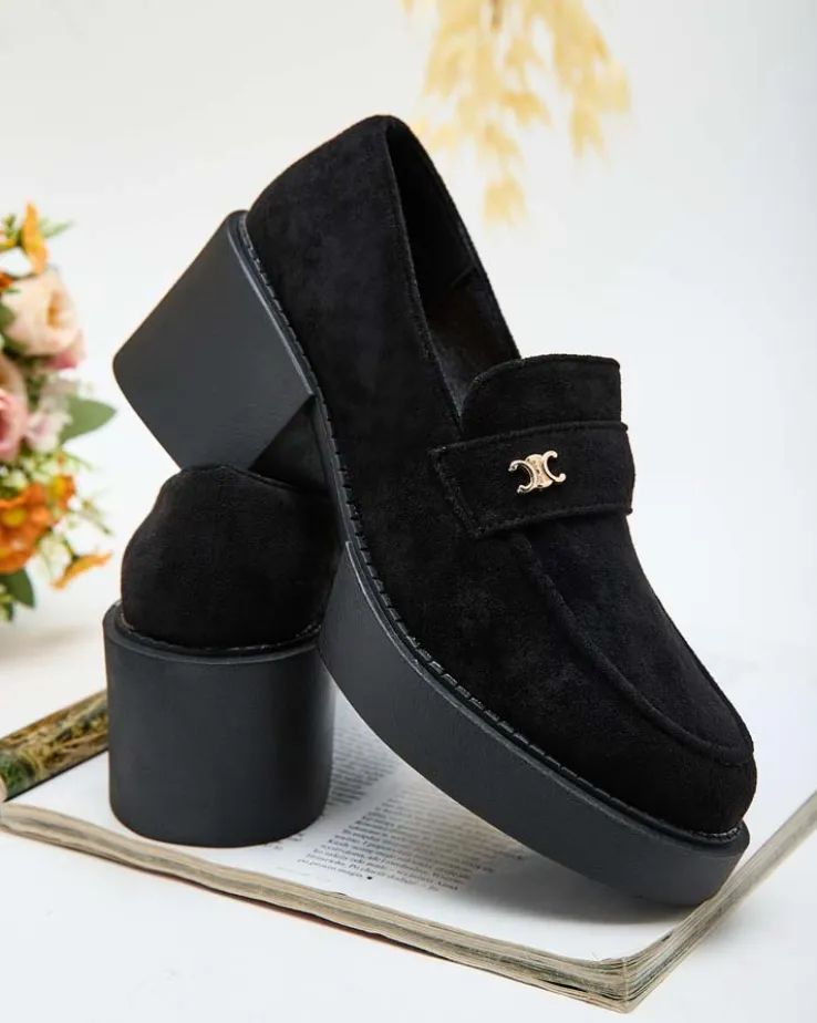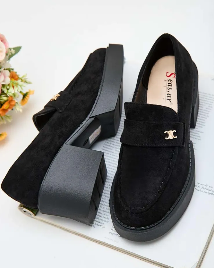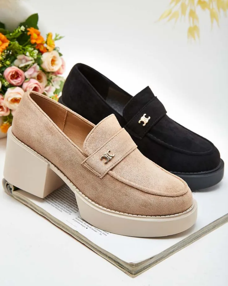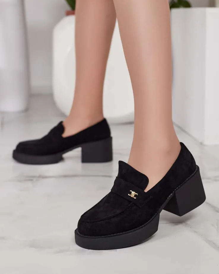 - Przepiękne damskie półbuty typu mokasyny na słupku. Model w tylu casual i jest wykonany ze skóry ekologicznej zamszowej i wkładki z eko skóry. Nosek zaokrąglony. Idealna baza dla wielu codziennych looków!
