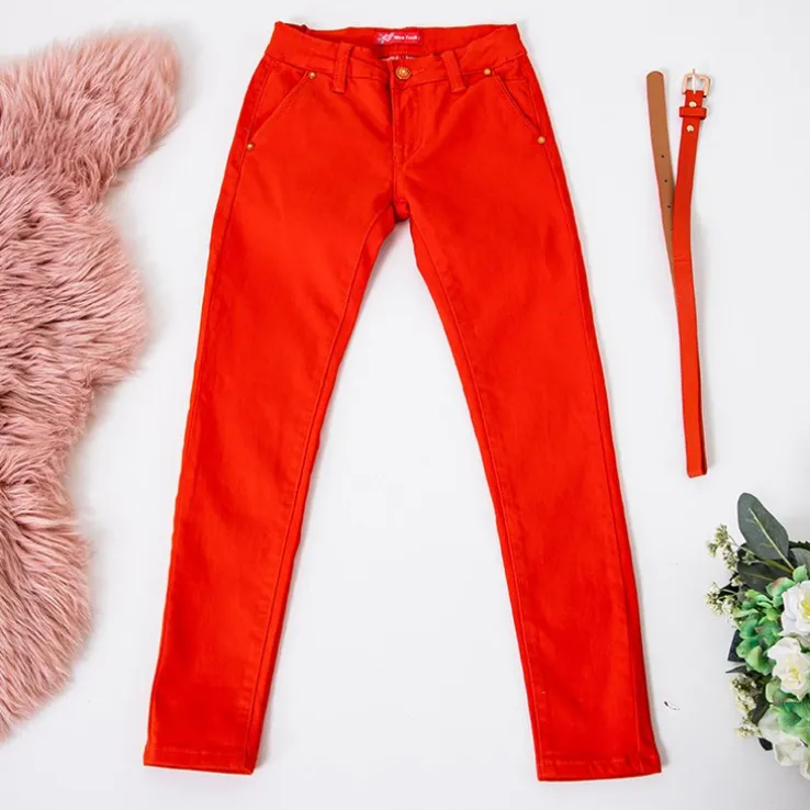 - Bardzo stylowe dziecięce spodnie typu rurki z paskiem. Model zapinany suwakiem oraz na guzik, w pasie gumka z możliwością regulacji. Z przodu i z tyłu 4 wsuwane kieszenie. UWAGA: Dokładność pomiaru (+/-) 1 cm.