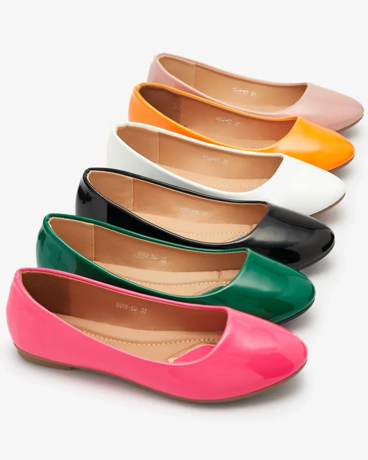 - Klasyczne baleriny wykonane z lakierowanej eko-skóry z okrągłym noskiem. Miękka eko-skórzana wkładka z poduszeczkami dostarczy komfortu. Idealnie się sprawdzą do eleganckich i modnych stylizacji!