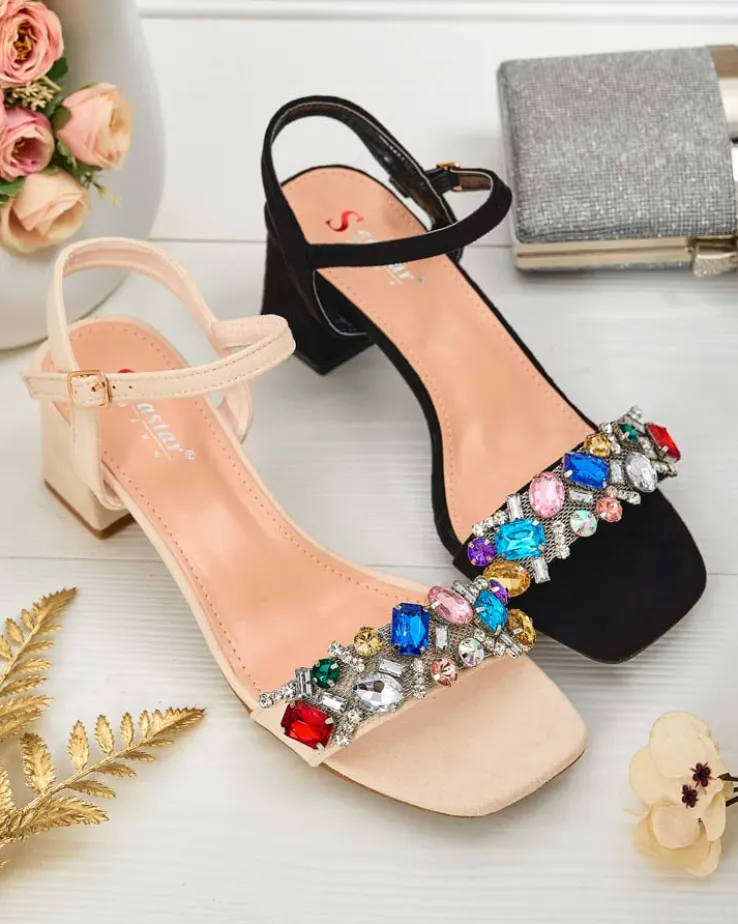 Royalfashion Sandały damskie na słupku z kryształkami Osdar