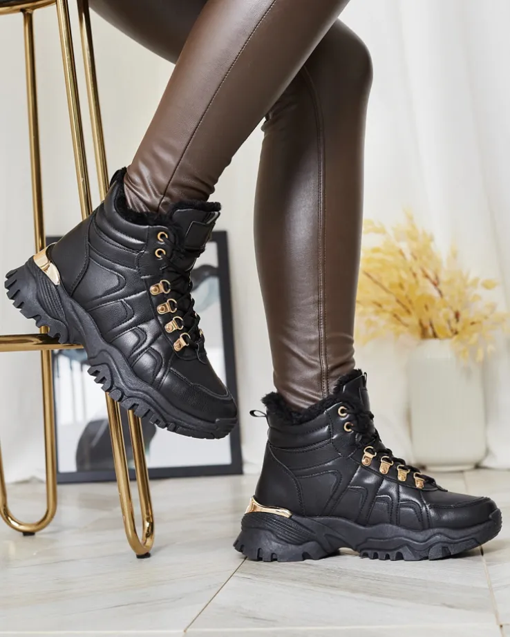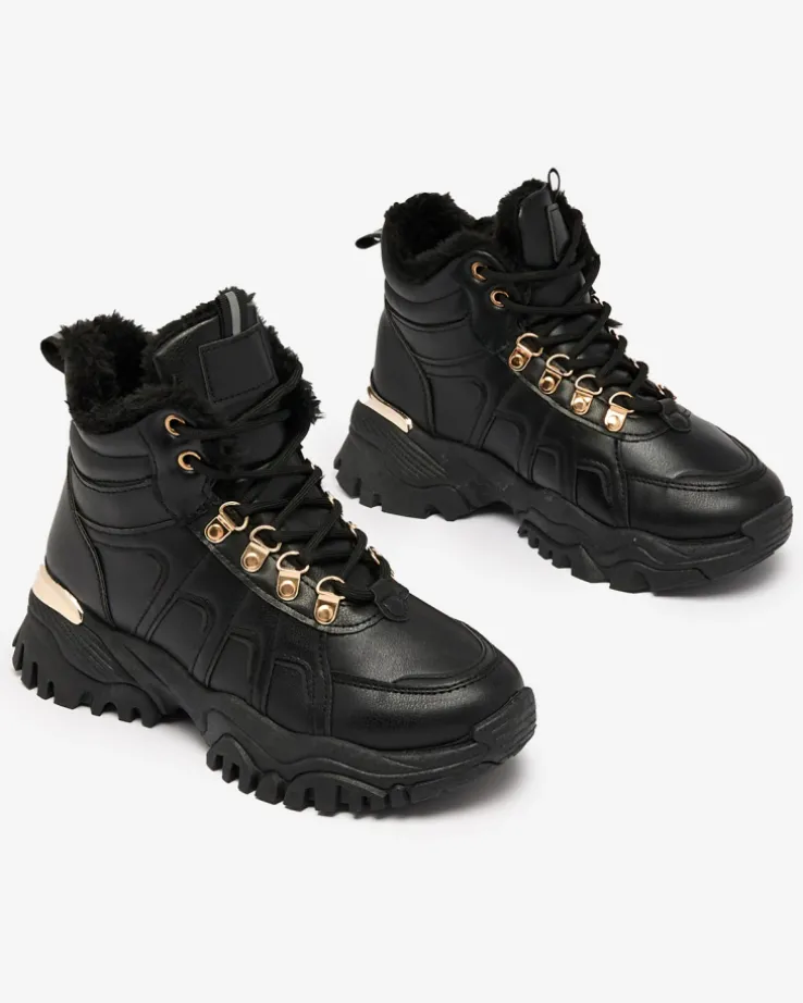Royalfashion Sneakersy damskie z futerkiem w kolorze czarnym Megigna