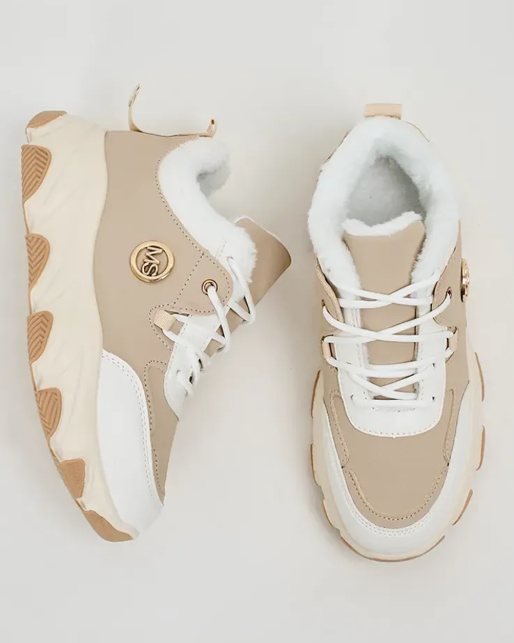 - Damskie ocieplane buty sportowe typu sneakersy na grubszej podeszwie. Sznurowana cholewka wykonana ze skóry ekologicznej. W środku miękkie futerko. Super dodatek do Twoich zimowych outfitów w stylu casual!