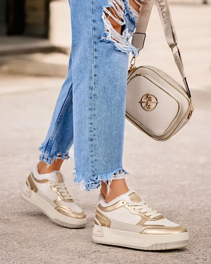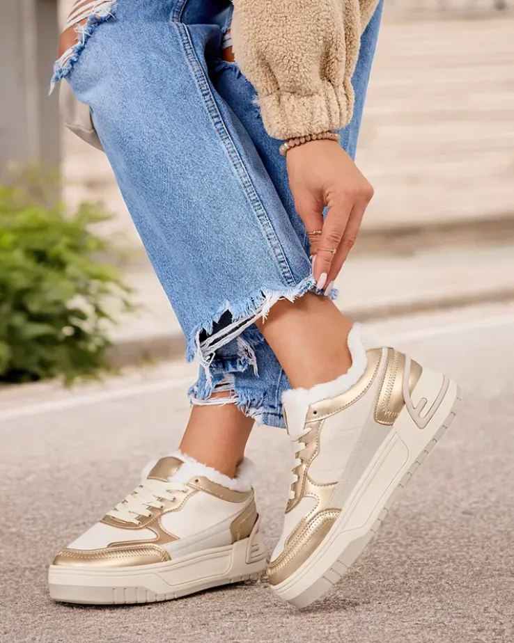 - Damskie ocieplane buty sportowe typu sneakersy na grubszej podeszwie. Sznurowana cholewka wykonana ze skóry ekologicznej i eko zamszowej. W środku miękkie futerko. Super dodatek do Twoich zimowych outfitów w stylu casual!