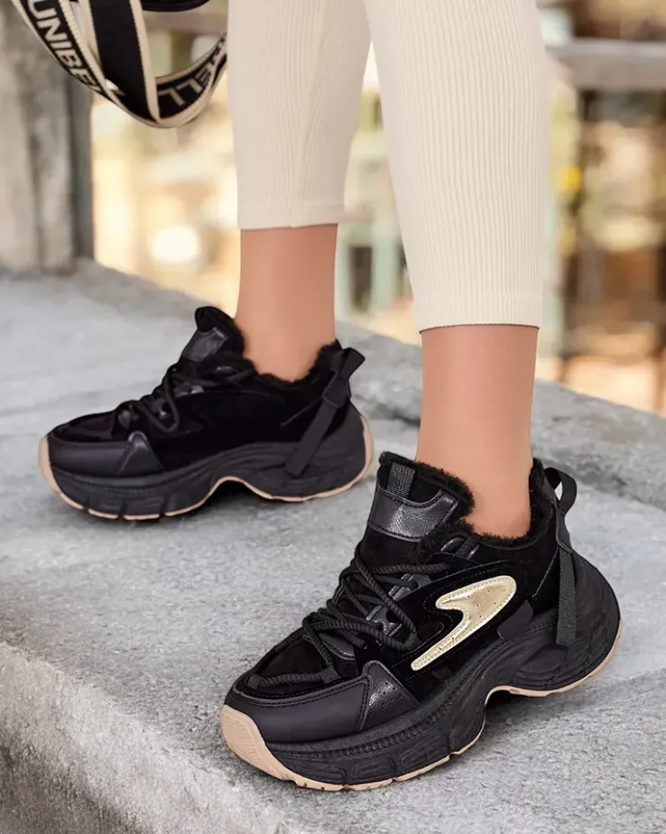 - Damskie ocieplane buty sportowe typu sneakersy na grubszej podeszwie. Sznurowana cholewka wykonana z zamszowej skóry ekologicznej z elementami eko skóry. W środku miękkie futerko. Super dodatek do Twoich zimowych outfitów w stylu casual!