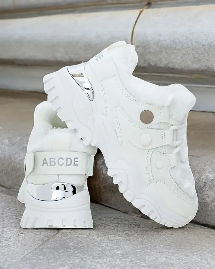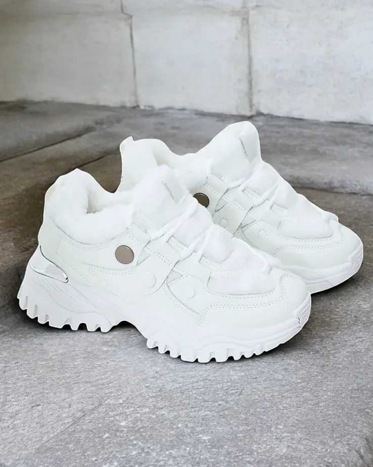 - Damskie ocieplane buty sportowe typu sneakersy na grubszej podeszwie. Sznurowana cholewka wykonana z połączenia eko skóry i tkaniny. W środku miękkie futerko. Super dodatek do twoich zimowych outfitów w stylu casual!