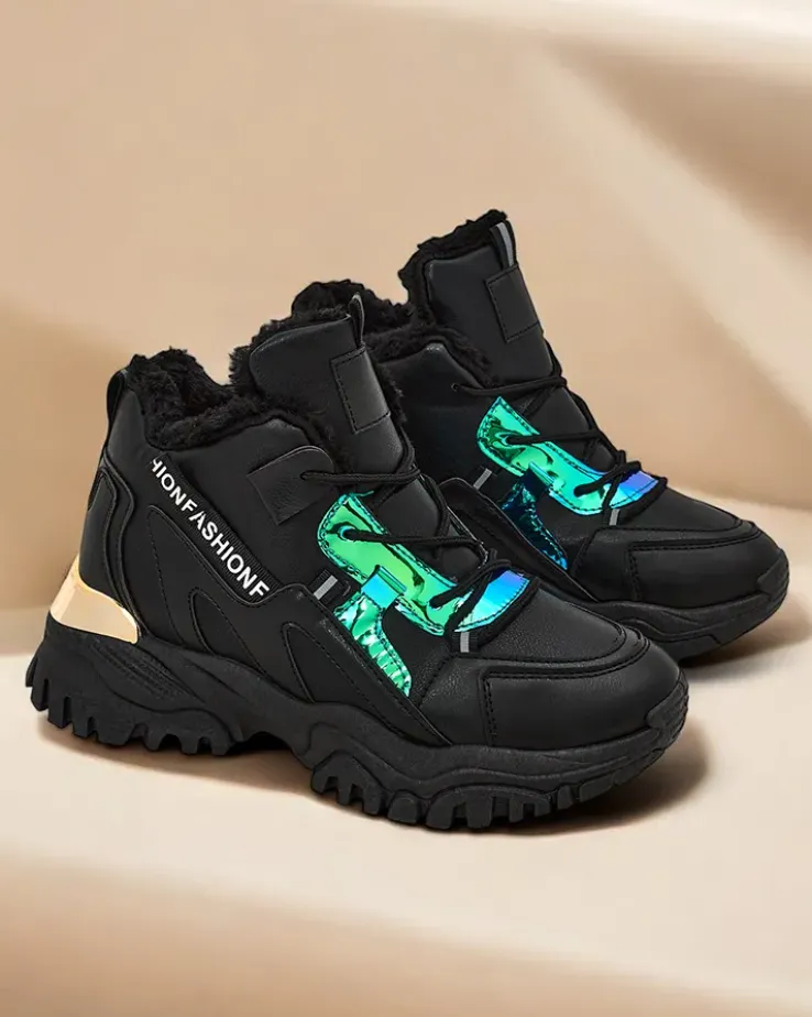 - Damskie ocieplane buty sportowe typu sneakersy na grubszej podeszwie. Sznurowana cholewka wykonana ze skóry ekologicznej. W środku miękkie futerko. Super dodatek do Twoich zimowych outfitów w stylu casual!