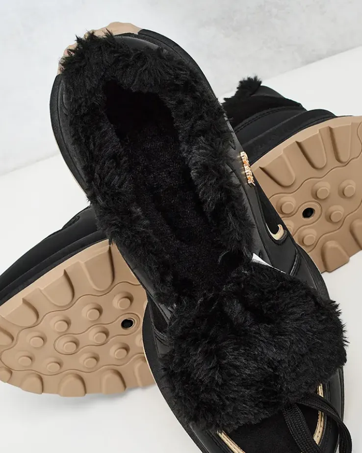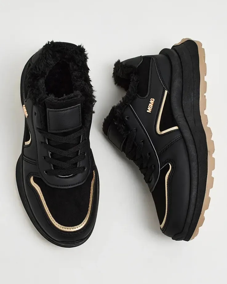 - Damskie ocieplane buty sportowe typu sneakersy na grubszej podeszwie. Sznurowana cholewka wykonana z zamszowej skóry ekologicznej z elementami eko skóry. W środku miękkie futerko. Super dodatek do Twoich zimowych outfitów w stylu casual!