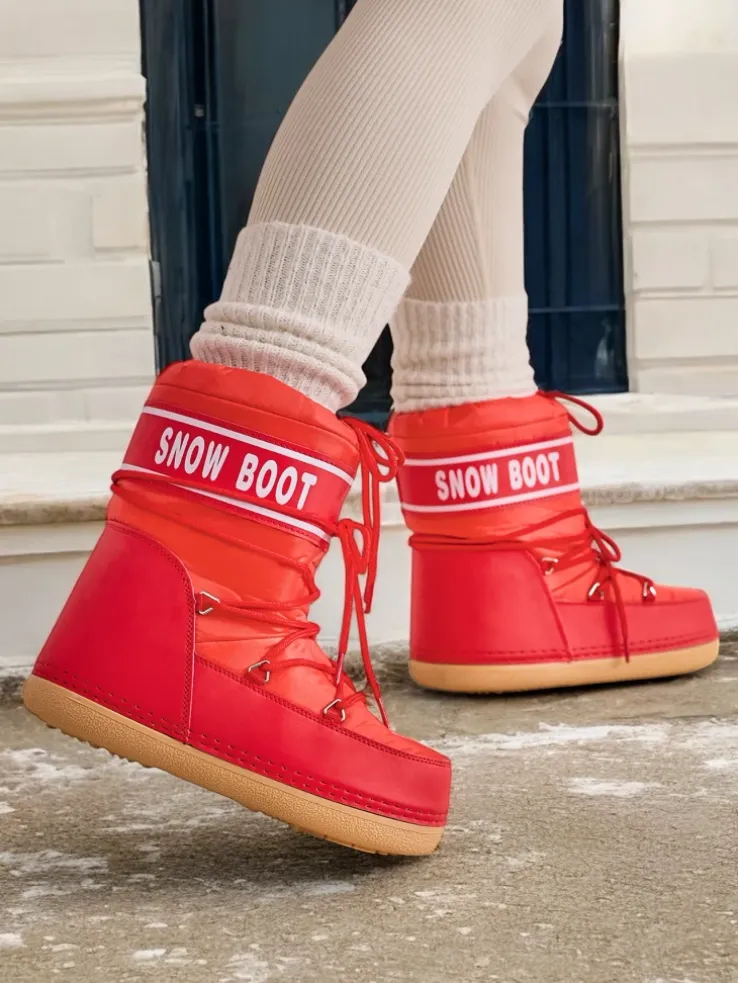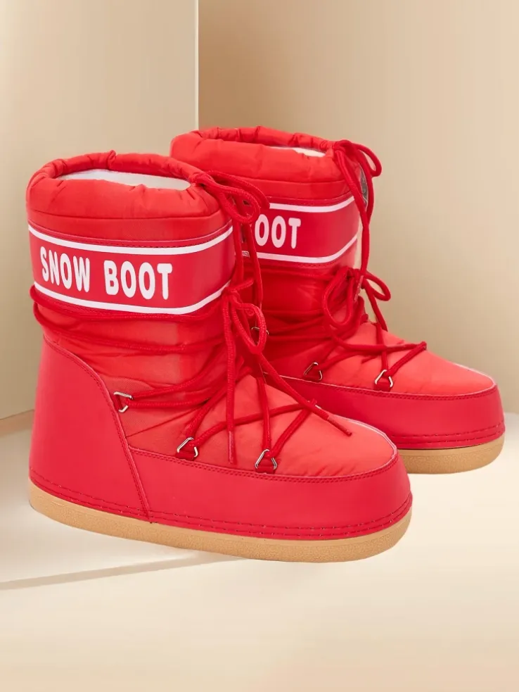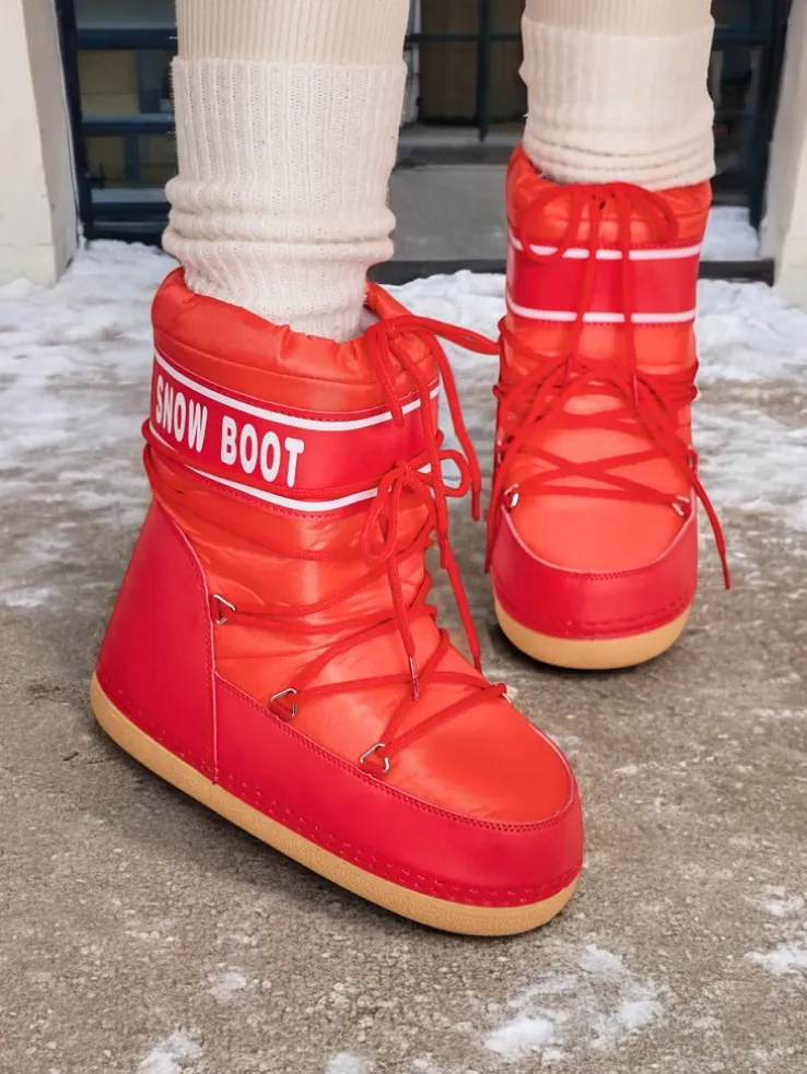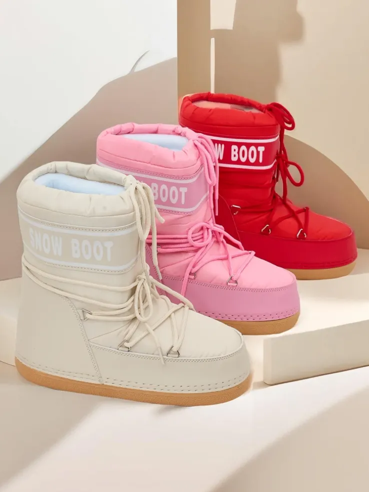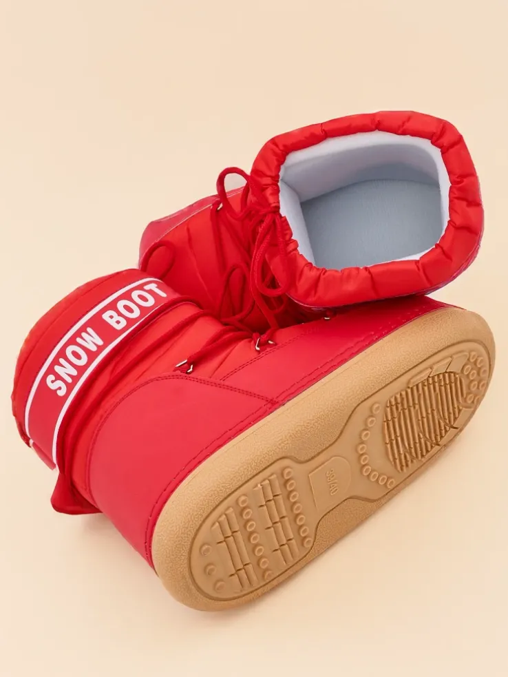 - Damskie obuwie typu śniegowce z cholewką wykonaną z połączenia eko skóry oraz materiału tkaninowego pikowanego. W środku wyłożone tkaniną, obuwie wsuwane i sznurowane, posiada ściągacz.