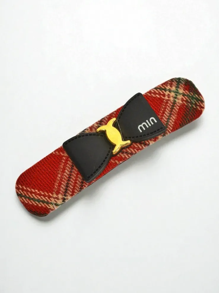 - Urocza spinka do włosów w kratkę, ozdobiona kokardką. Stylowy dodatek, który doda wdzięku każdej fryzurze – idealna do codziennych stylizacji i romantycznych upięć.