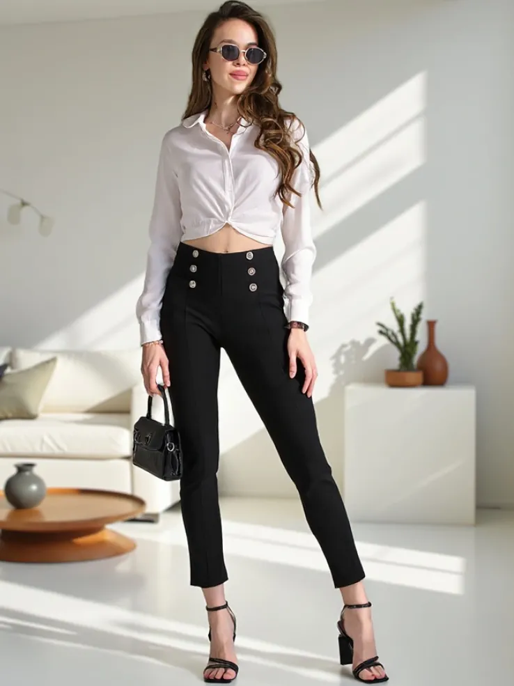 Royalfashion Spodnie typu tregginsy damskie z ozdobnymi guzikami