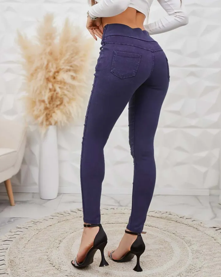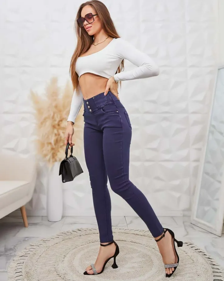 - Ponadczasowe damskie spodnie typu tregginsy, wykonane z rozciągliwego materiału. Model posiada szeroką gumę w pasie oraz 2 wsuwane kieszenie z przodu i z tyłu. Zdobiony guzikami. Doskonałe na co dzień!