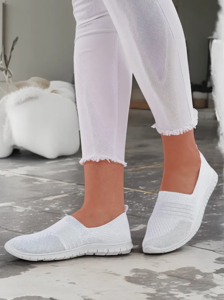 - Sportowe damskie mokasyny na płaskiej podeszwie. Klasyczny model wykonany z tkaniny. Idealna baza na co dzień!
