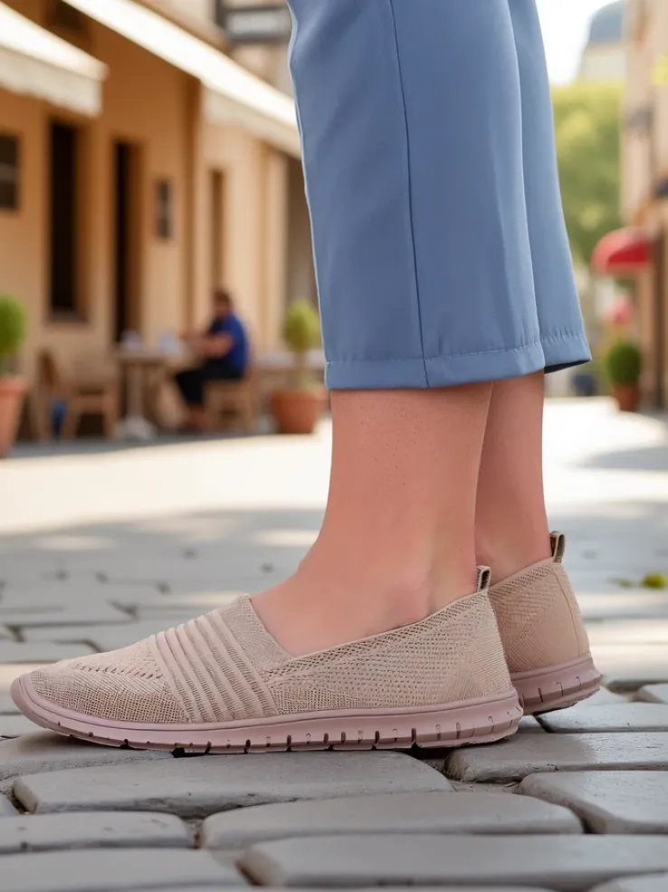 - Sportowe damskie mokasyny na płaskiej podeszwie. Klasyczny model wykonany z tkaniny. Idealna baza na co dzień!