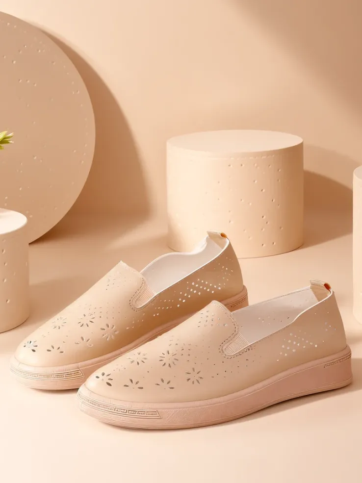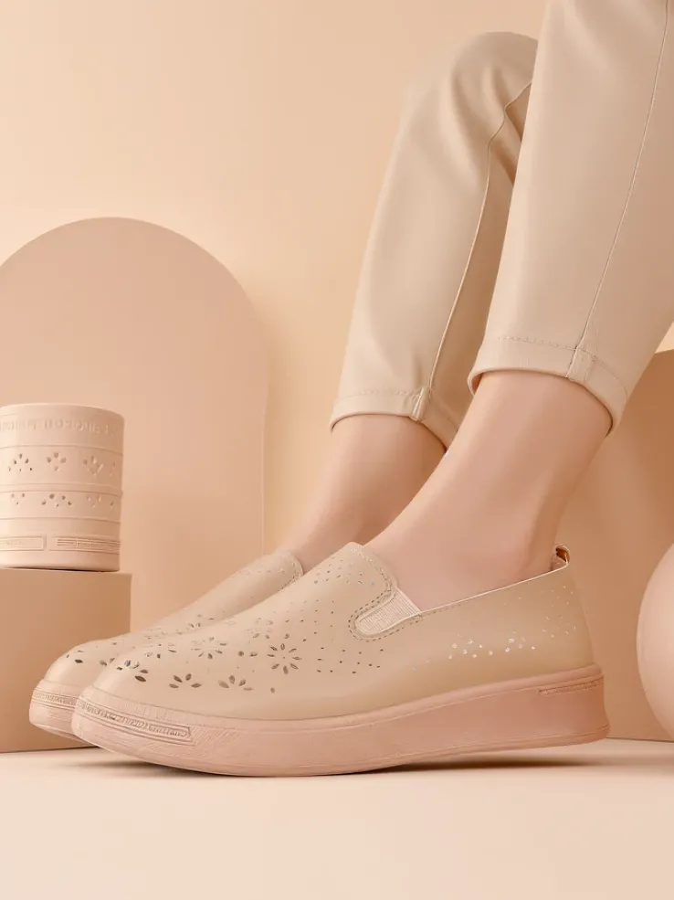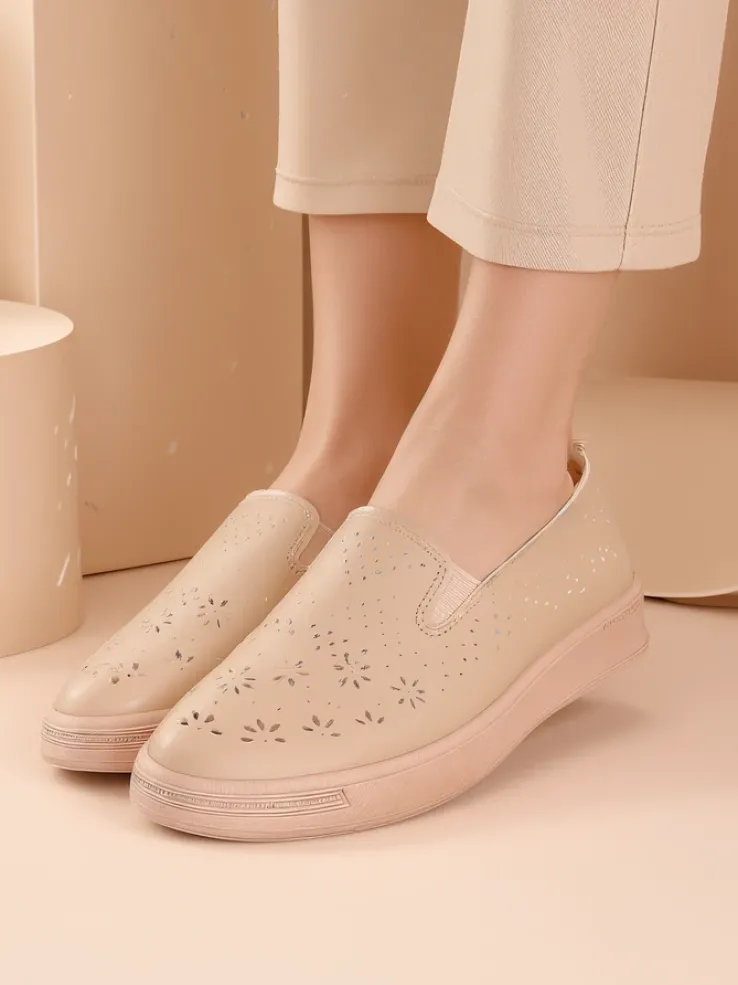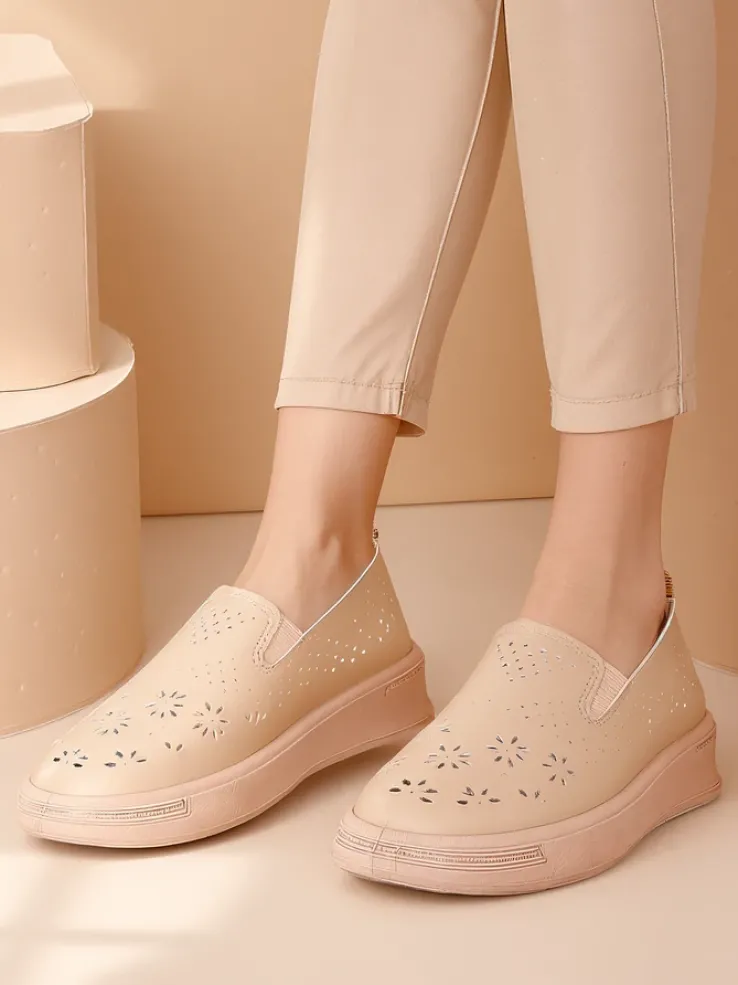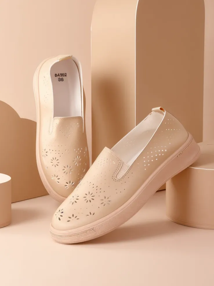 - Sportowe damskie mokasyny na płaskiej podeszwie. Klasyczny model wykonany z eko skóry z ażurowym wykończeniem oraz wkładki tkaninowej. Idealna baza na co dzień!