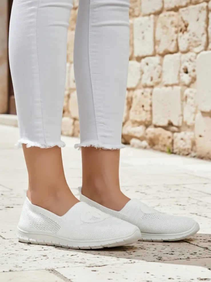 - Sportowe damskie mokasyny na płaskiej podeszwie. Klasyczny model wykonany z tkaniny. Idealna baza na co dzień!