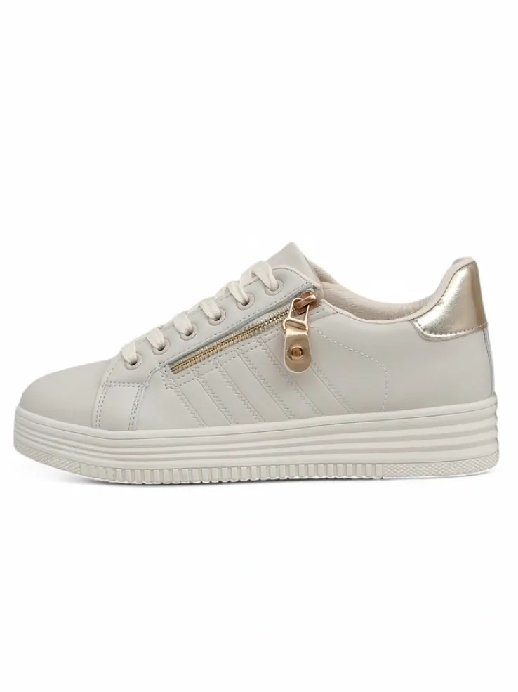 - Sneakersy damskie na płaskiej podeszwie – perfekcyjne połączenie stylu i komfortu. Obuwie wykonane z eko skóry. Model sznurowany, posiada tkaninową wkładkę. Idealne dla aktywnych osób!