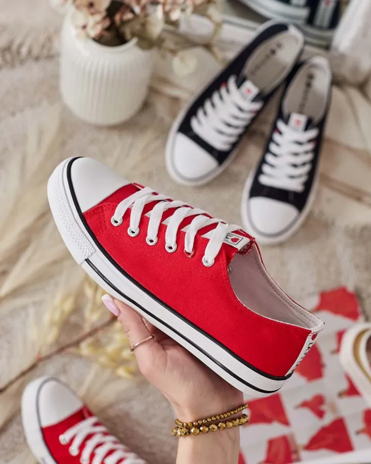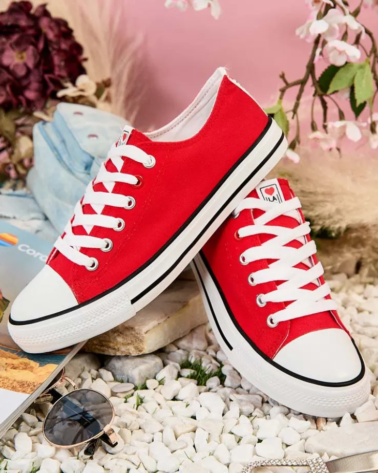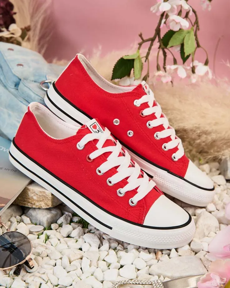 - Stylowe sportowe trampki damskie wykonane z materiału tkaninowego. Model na wygodnej podeszwie. Cholewka jest sznurowana. Świetne do tworzenia casualowych outfitów!