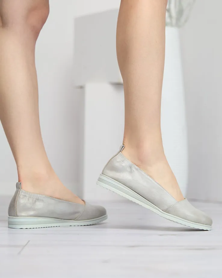- Piękne i wygodne baleriny damskie wykonane ze skóry ekologicznej – pięknie mieniącej się w słońcu. Idealny wybór dla kobiet ceniących komfort!
