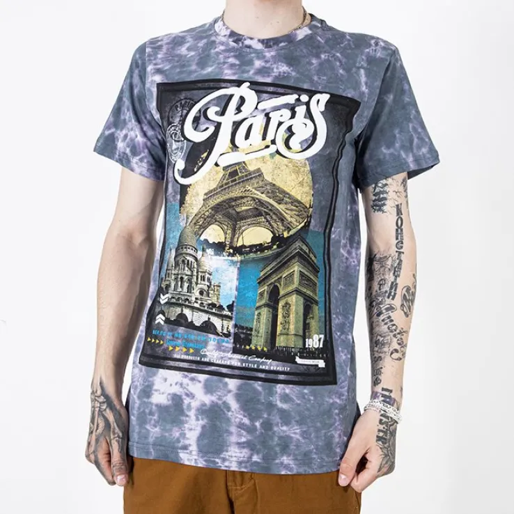 - Klasyczny męski t-shirt wykonany ze 100% bawełny. Model z krótkim rękawem oraz okrągłym dekoltem. Przednia część koszulki jest zdobiona nadrukiem. UWAGA: Dokładność pomiaru (+/-) 1 cm.