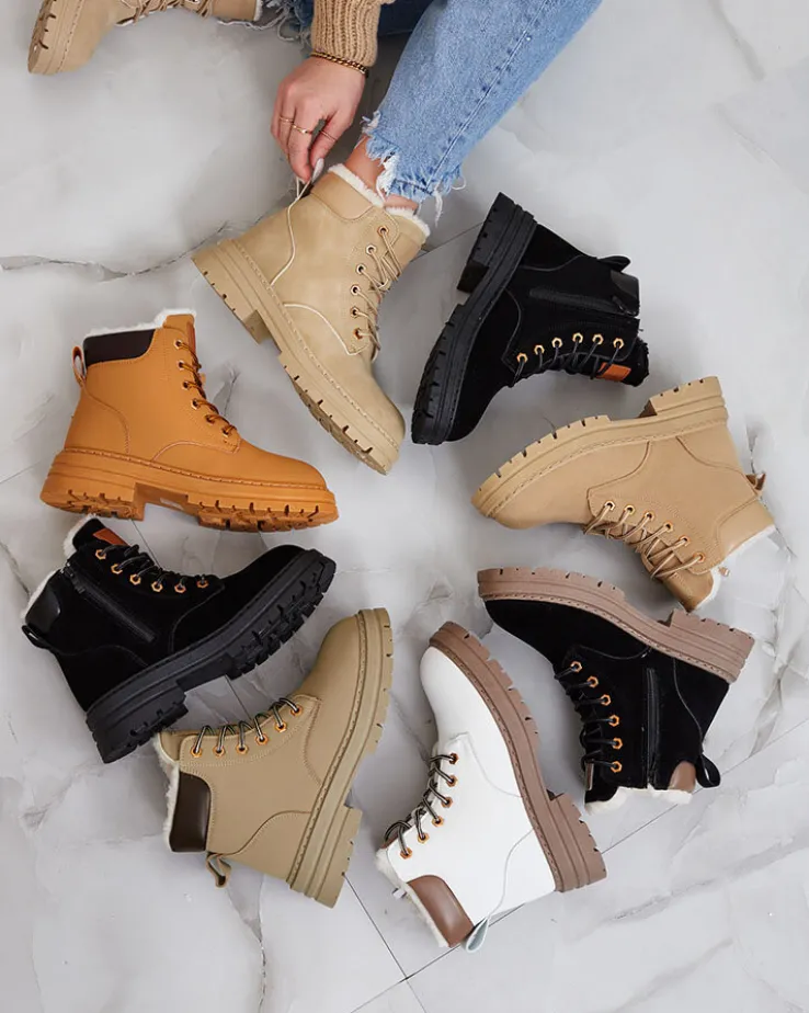 - Ponadczasowe damskie botki a’la trapery. Sznurowana cholewka wykonana jest ze skóry ekologicznej matowej, środek ocieplony delikatnym futerkiem. Super dodatek do Twoich casualowych outfitów!