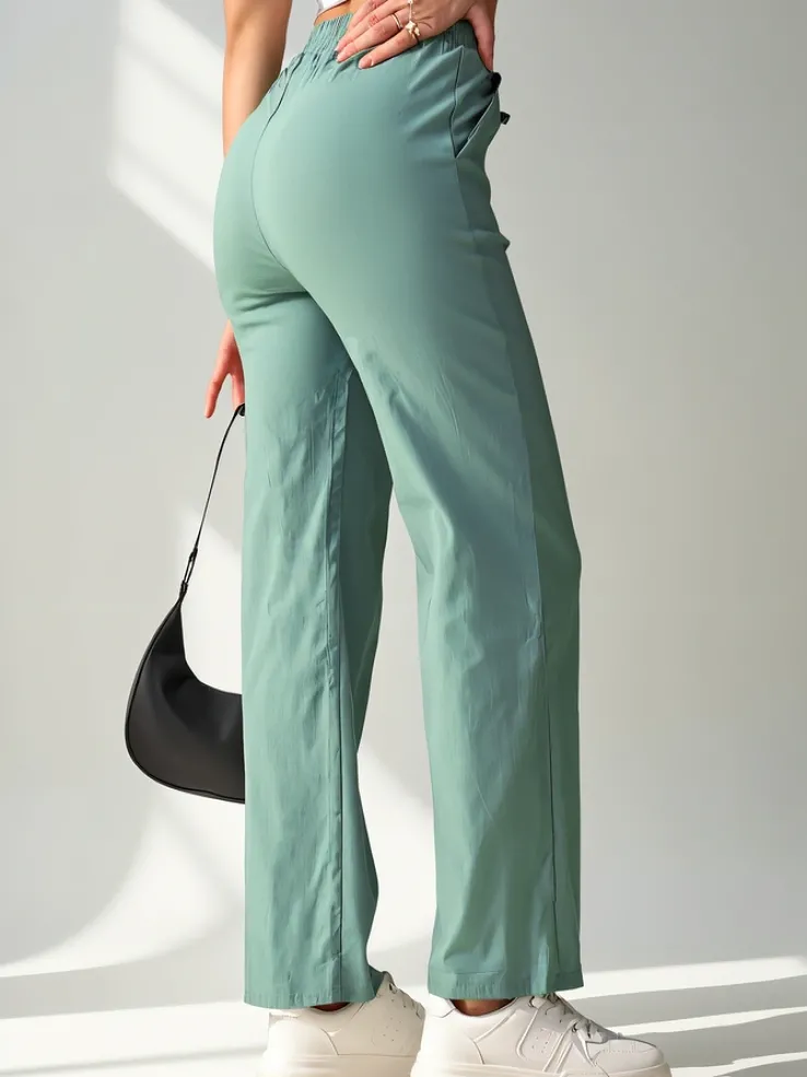 - Szerokie spodnie wykonane z lekkiej tkaniny, model posiada gumę w pasie oraz dwie kieszenie. Wygodne i komfortowe! UWAGA: Dokładność pomiaru (+/-) 1 cm.