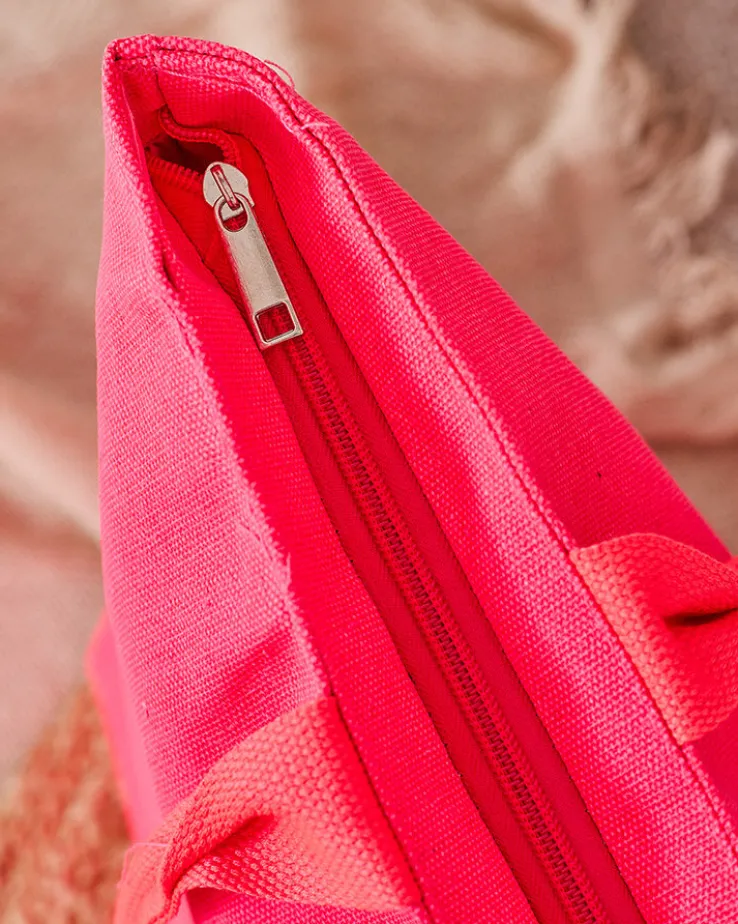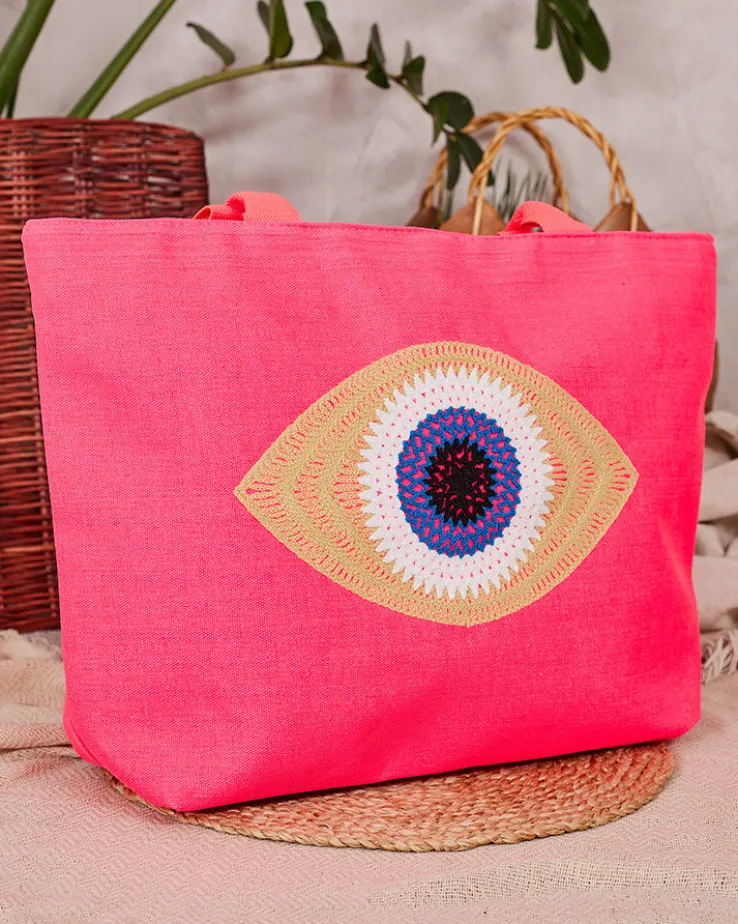 - Duża torba damska, wykonana z tkaniny z haftowanym wzorem. Model posiada 1 komorę, 1 wewnętrzną przegródkę oraz jest zapinana na zamek. Idealna na co dzień czy na plażę!