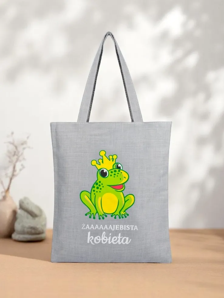 - Materiałowa torebka na ramię z zabawnym nadrukiem, zapinana na suwak. Lekka, funkcjonalna i pełna charakteru – idealna na codzienne stylizacje z nutką humoru.