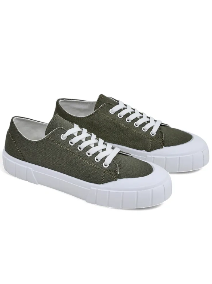 - Damskie trampki wykonane z materiału tkaninowego. Cholewka sznurowana. Podeszwa klasycznie gumowa. Te buty będą świetne na co dzień!