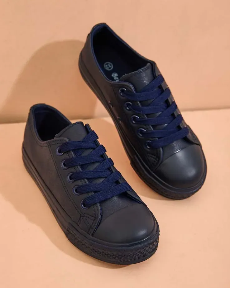 - Dziecięce trampki wykonane z eko skóry i tkaninowej wkładki. Cholewka sznurowana. Podeszwa klasycznie gumowa. Te dziecięce buty będą świetne na co dzień!