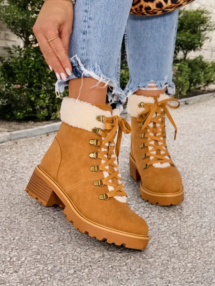 - Delikatnie ocieplane trapery damskie, wykonane z eko skóry. Model posiada sznurowaną cholewkę. Konkretne buty na złą pogodę!