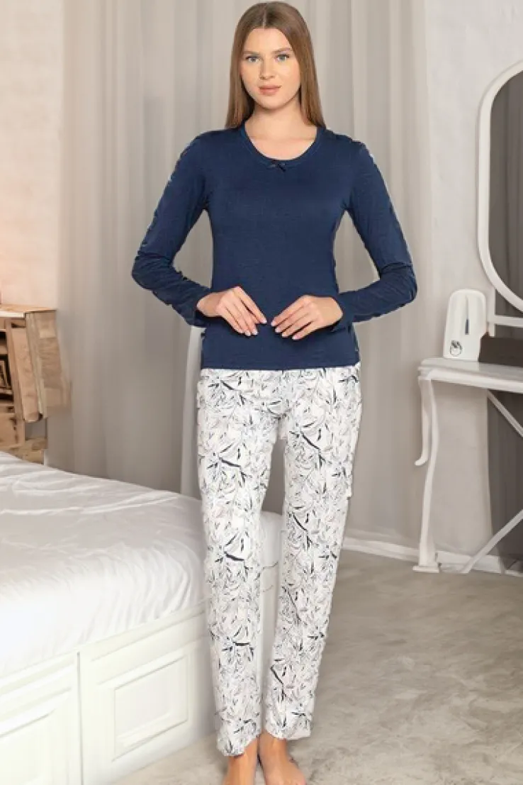 - Piżama damska 2-częściowa z długim rękawem i długimi nogawkami, wykonana z materiału bawełnianego. Model zdobiony printem. Idealna na domowe wieczory! UWAGA: Dokładność pomiaru (+/-) 1 cm.