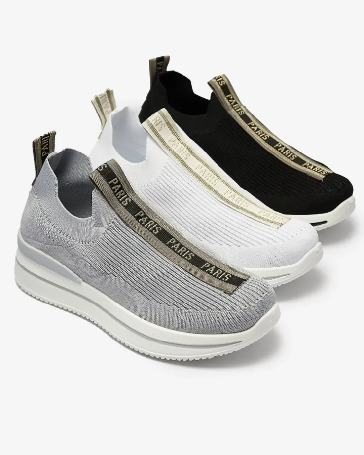 - Wygodne damskie buty sportowe na płaskiej podeszwie. Cholewka wykonana jest z elastycznego materiału tkaninowego, w środku tkaninowa wkładka. Model zdobiony napisami. Idealna baza dla wielu codziennych looków!