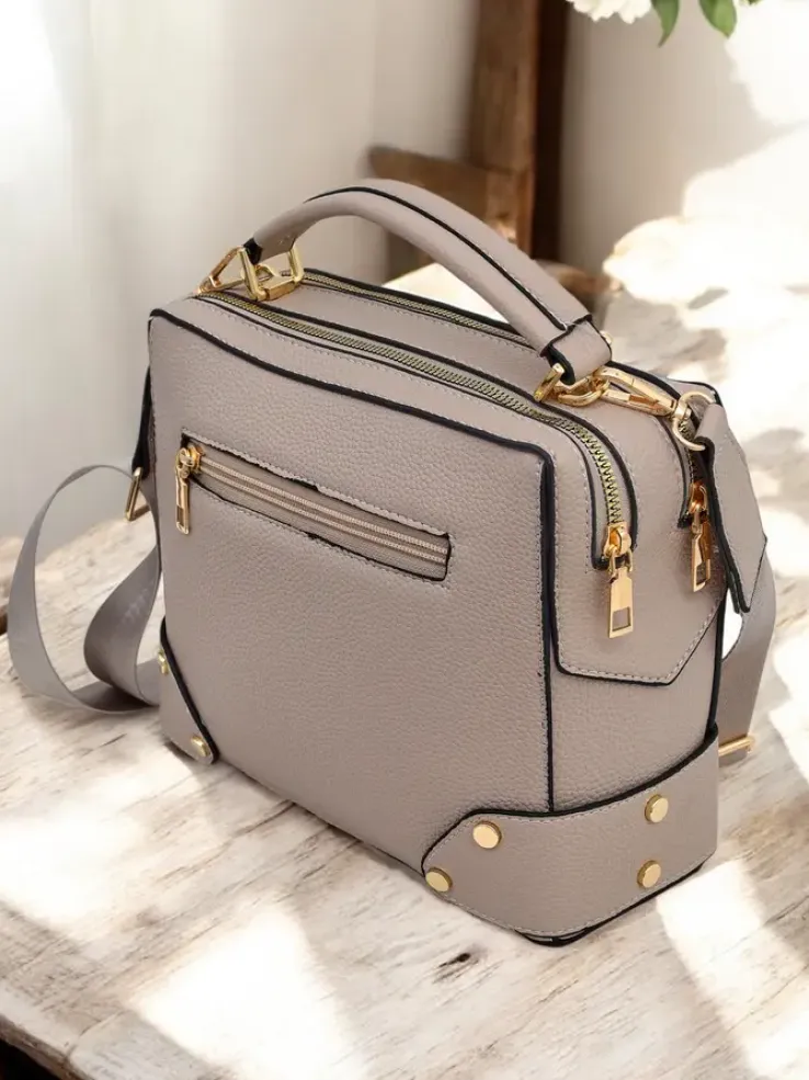 - Uniwersalna torebka zapinana na zamek, wykonana ze skóry ekologicznej.